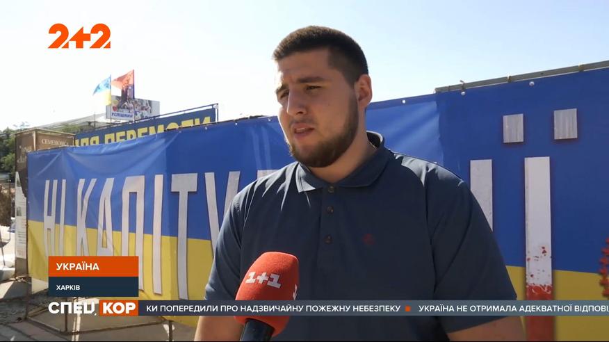 В Харькове расклеили огромные баннеры против капитуляции. Полотнища длиной 8 метров. Сделали их за деньги местных активистов и военных. Сине-желтые баннеры разместили на двух мостах, а еще возле волонтерской палатки, где собирают помощь на фронт. Так местные жители выразили свое возмущение, потому что говорят, что не хотят, чтобы украинские позиции у поселка Шумы, и собственно, на любом другом участке фронта, проверяли враги и убийцы украинцев. Полные выпуски смотрите на 1+1 video