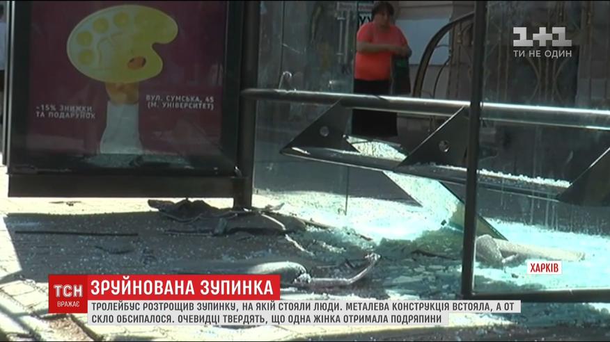 В Харькове троллейбус раздавил остановку, на которой находились люди. Транспорт двигался по улице, пытался объехать припаркованные на обочине машины, и остановиться для высадки пассажиров, но водитель не справился с управлением и зацепил стеклянный павильон остановки. В это время там было около десятка человек. По свидетельствам очевидцев, одной из женщин осколками поцарапало ногу, но за медицинской помощью она не обращалась.