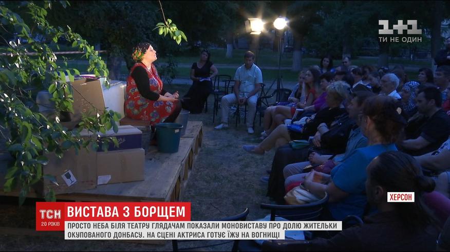 В Херсоне под открытым небом показали моно-представление о жительнице оккупированного Донбасса
