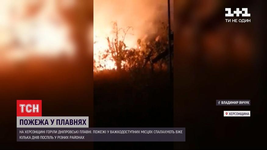 В Херсонской области всю ночь тушили пожар в национальном парке "Нижнеднепровский". Этот масштабный пожар сняли вечером работники нацпарка "Нижне-Днепровский". Горел камыш и деревья. Огонь подходил к парку от дачных усадеб - очевидно, кто-то из владельцев решил сжечь сухостой. Чтобы отсечь стихию от человеческих жилищ, весь вечер и ночь пламя тушили с помощью единственного в области пожарного катера.