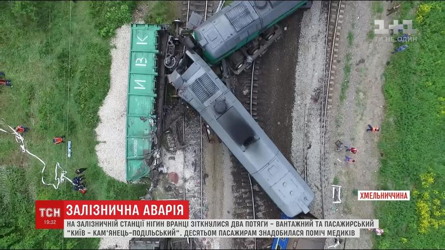 В Хмельницкой области столкнулись пассажирский и грузовой поезда, есть пострадавшие