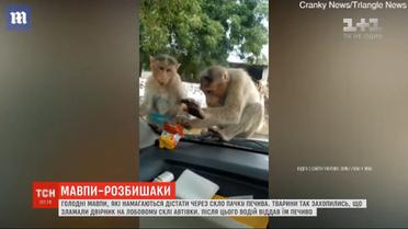 В Индии засняли, как обезьяны пытаются стащить еду через стекло машины