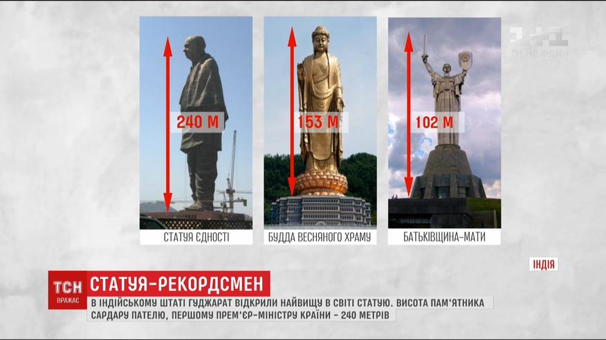 Высота монумента вместе с пьедесталом - 240 метров. Его во время торжественной церемонии, несмотря на критику местного населения открыл премьер-министр страны Нарендра Моди. Это бронзовый памятник Сардару Пателю - лидеру в борьбе за независимость Индии во время правления британских колонизаторов.