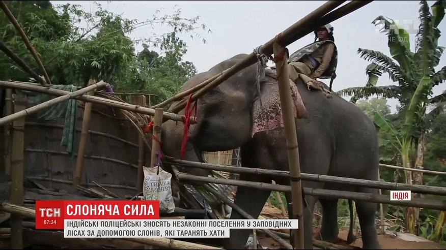 Сносили незаконные поселения в заповедных лесах. Оседлав слонов, полицейские направляли их прямо на бамбуковые домики, чтобы животные таранили стены строений своими бивнями. Таким необычным способом планируют снести около тысячи сооружений.