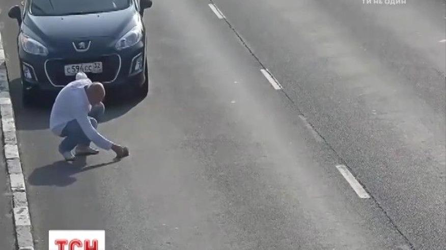 В интернете появилось видео с невероятным спасением котенка на скоростной трассе