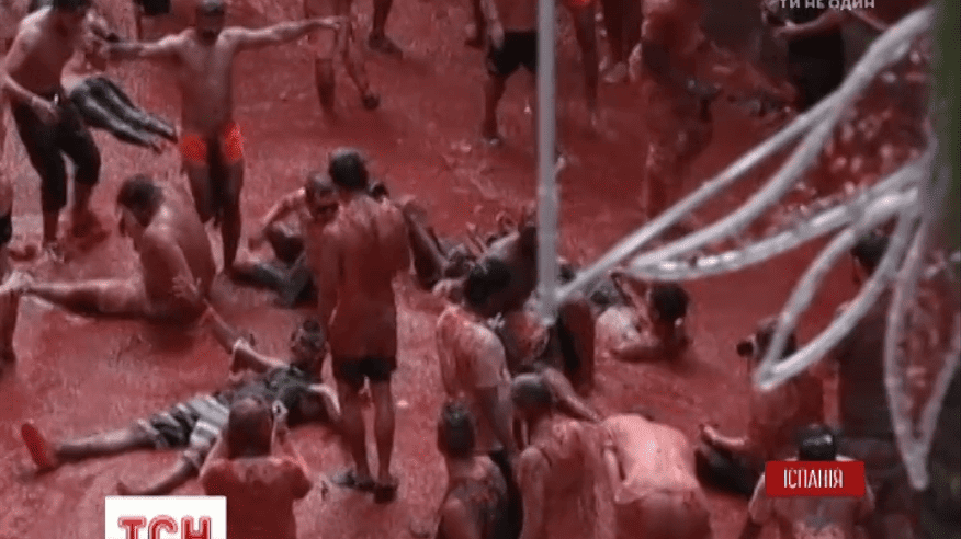 Испанию затопило томатное море. Страна не пожалела овощей, чтобы эффектно попрощаться с летом. Эпицентром помидорных боев стал городок Буньоль. Десятки тысяч людей бросали друг в дружку помидорами, и за несколько часов улицы города превратили буквально на красное месиво.