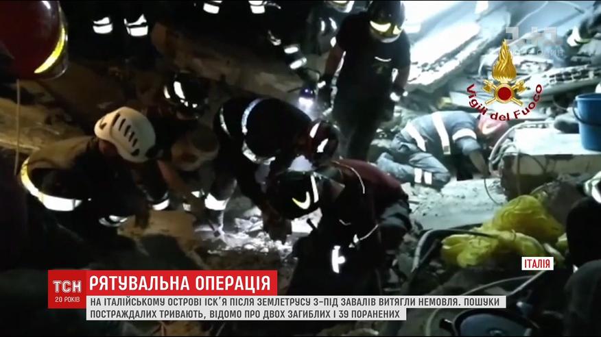 Успешное завершение операции очевидцы встретили аплодисментами. Чрезвычайники на острове Искья работали всю ночь, поиск продолжается до сих пор. По информации властей, погибла пожилая женщина, 26 человек госпитализированы, разрушено несколько зданий, сильно повреждена больница в городе Лакко-Амено, ее пациентов пришлось эвакуировать.