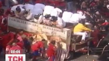 ТСН Видео Дата публикации 10:10, 21.02.12 Категория Видео Количество просмотров 266 В Италии состоялись традиционные бои апельсинами Бойцы делятся на две команды и отчаянно "воюют" между собой.