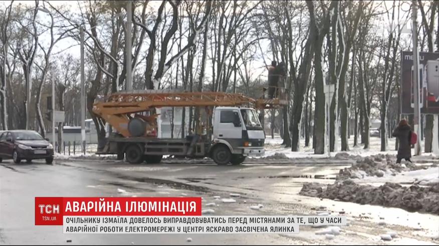 Городскому голове Измаила Андрей Абрамченко пришлось оправдываться перед горожанами за праздничную иллюминацию на главной елке. Город в Одесской области пострадали от урагана 18 января и сейчас получает свет по резервной линии, да еще и с большими перебоями. Поэтому некоторые жители не поняли, почему, несмотря на сложную ситуацию со светом, центр до сих пор в иллюминации и горит главная елка.