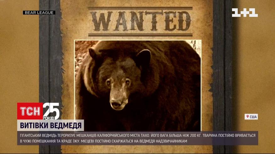 Гигантский медведь терроризирует жителей калифорнийского города Тахо. Из-за своих размеров - а это более 200 кг - и неистовый характер его уже окрестили "Ханком-Танком". Медведь полностью потерял страх перед людьми, постоянно врывается в чужие дома и ворует пищу. Он уже повредил десятки домов. Последнее его мародерство было в прошлую пятницу – он залез в дом через окно, когда внутри были люди.