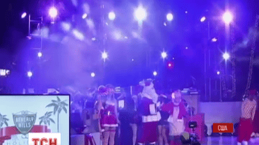 На главной улице Беверли Хиллз - Родео драйв - пальмы украсили десятками тысяч фонариков. Санта поздравил всех с праздниками и спел рождественские песни. Вместо настоящего снега - в воздухе рассыпали белое конфетти. А снегурочки, прибывшие на праздник, придерживались всех новогодних традиций, кроме одной - при температуре +25 - новогодние костюмы были минимальными.