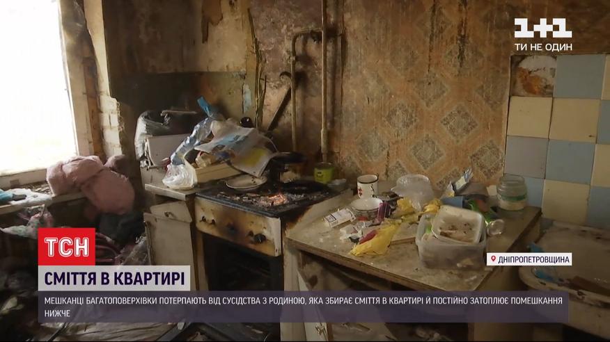 Заваленная хламом чуть ли не до потолка - в Каменском Днепропетровской области семья превратила квартиру в свалку. Из-за ужасной антисанитарии в доме завелись тараканы и мыши, которые разбегаются по всех девяти этажах дома. Жители соседних квартир страдают от вони и повлиять на соседей не могут.