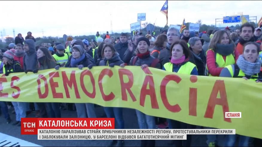 Сторонники независимости региона перекрыли автодороги и препятствуют работе железной дороги. Несколько тысяч митингующих требуют освободить арестованных каталонских лидеров, которые проигнорировали угрозы центральной власти и провозгласили независимость.