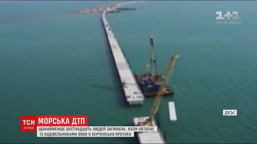 Автобус упал с 4-метровой высоты. Погибли по меньшей мере шестнадцать человек. Более двух десятков пострадавших - уже удалось извлечь из воды, пятеро из них - в тяжелом состоянии. Сначала появились данные, что пострадавшие - работали на строительстве моста. Впоследствии информацию опровергли, отметив, что строители возводили новый пирс на российской стороне пролива.