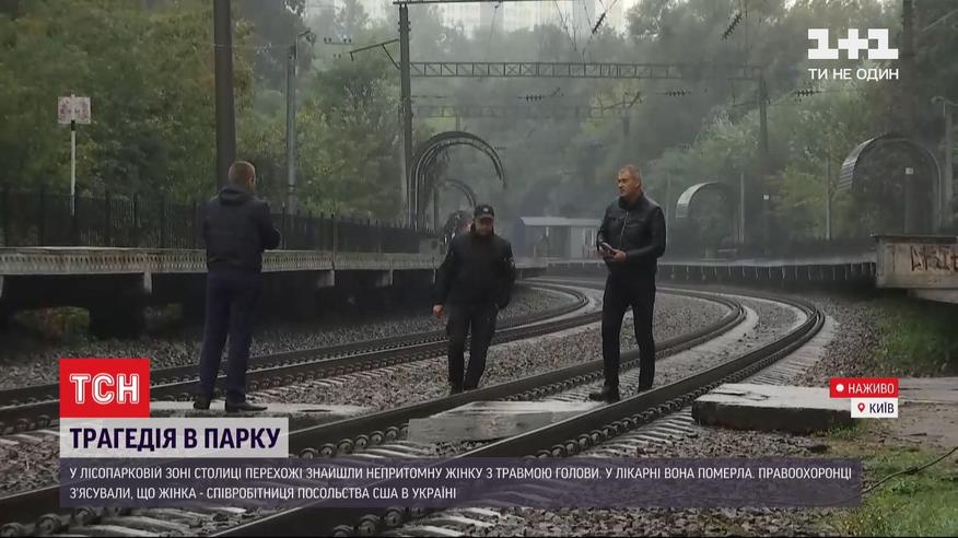 Чрезвычайное происшествие в Киеве. Днем в лесопарковой зоне прохожие нашли без сознания женщину с травмой головы - она оказалась сотрудницей Посольства Соединенных Штатов Америки. Ее госпитализировали, однако спасти раненую не удалось. Что известно на данный момент, имеют ли правоохранители хотя бы какие-то версии травмирования сотрудницы посольства и известно ли, какую должность она занимала - в прямом включении.