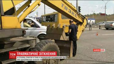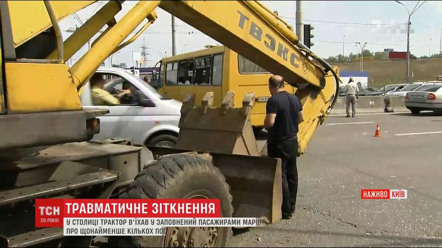 В Киеве экскаватор "Киевпастранса" въехал в заполнен пассажирами маршрутный автобус