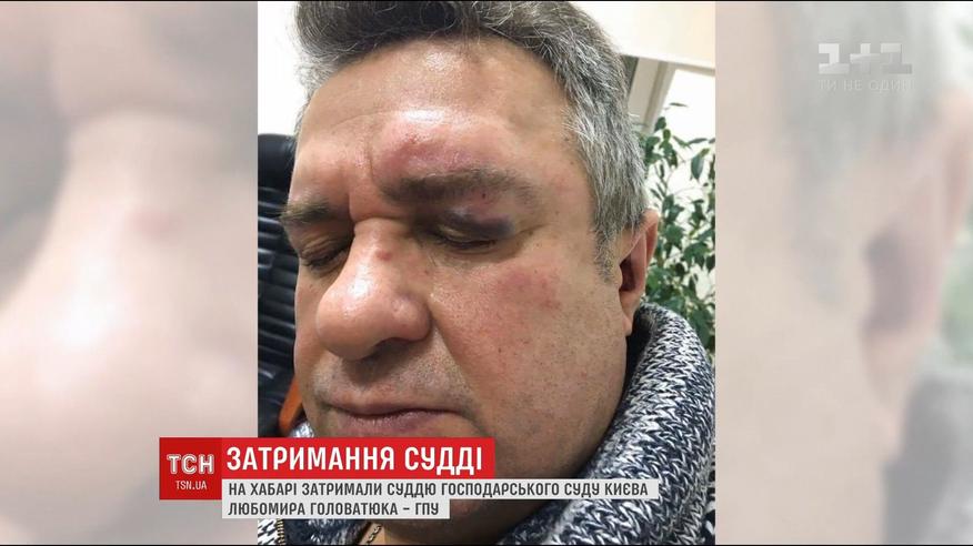 В распоряжение ТСН попали фото служителя Фемиды с окровавленным ухом и синяком под глазом. Накануне вечером генпрокурор Юрий Луценко отчитался, что судью задержали за взятку в 16 тысяч долларов. По информации Генпрокуратуры, в ближайшее время судьи должны избрать меру пресечения.