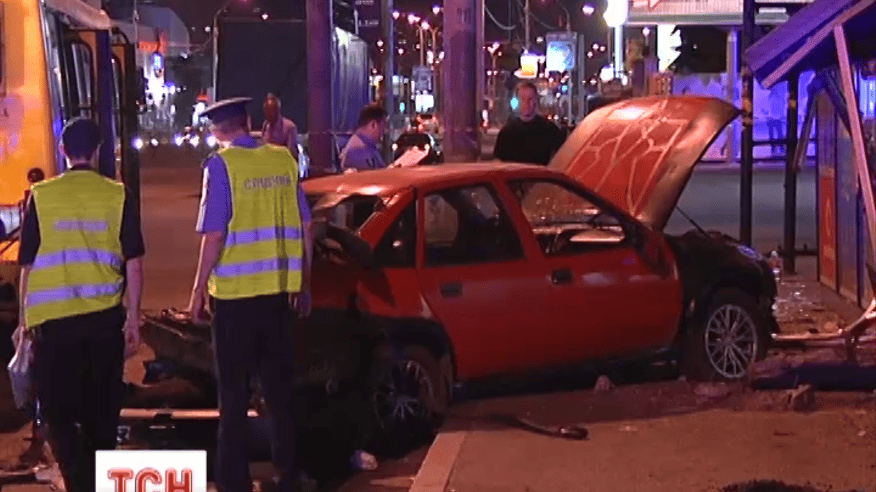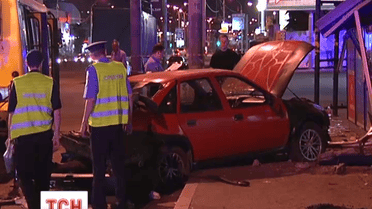 В Киеве легковушка протаранила остановку общественного транспорта возле завода "Маяк"
