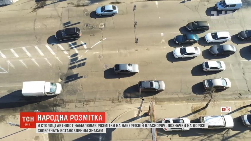 В Киеве мужчина взялся собственноручно рисовать разметку на набережной