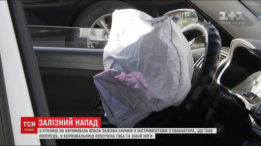В Киеве на авто с эвакуатора упала железный ящик с инструментами, есть пострадавшие