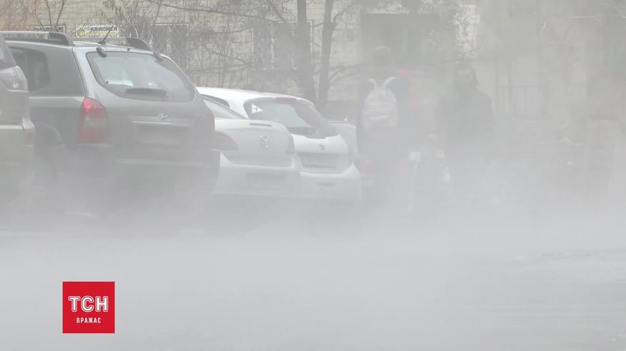 В Киеве на Отрадном прорвало трубу: улицу залило кипятком