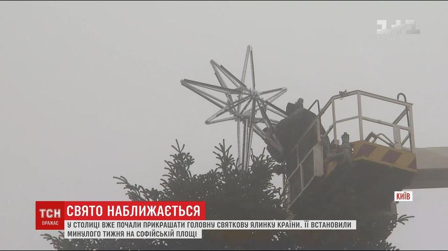 На ней уже развешивают гирлянды и установили верхушку. Для этого пригнали 30-метровую вышку. Опасным подъемом декораторов руководил спасатель. Сама рождественская звезда высотой 3 метра. За выходные все отделочные работы организаторы обещают закончить. Чтобы 19-го декабря в семь вечера Софийскую площадь стало видно из космоса.