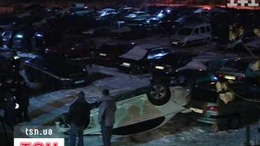 В Киеве поднялась в воздух легковушка "Мицубиси"