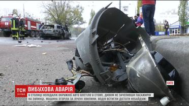 В Киеве полностью выгорело легковое авто после столкновения со столбом