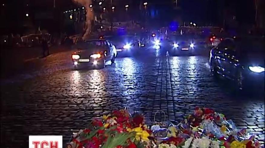 Накануне триста автомобилей с украинскими флагами и траурными лентами медленно проехали по центральным улицам столицы.