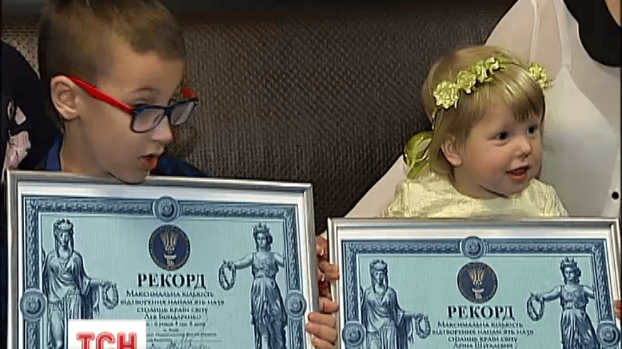 Двести столиц мира - без ошибок. От Северной Таравы и до Нейпидо. В столице установили рекорд на знание географии в самом младшем возрасте. Рекордсмены - харьковчанин Лев Бондаренко и Арина Шугалевич из Ровенщины. Чудо-дети продемонстрировали уникальные знания и попали в реестр рекордов Украины. Результат шестилетнего мальчика - двести пять столиц. Двухлетняя девочка называет 198.