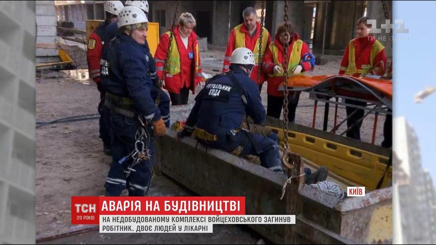 Еще двое - в тяжелом состоянии в больнице. В Днепровском районе Киева на приостановленном строительстве комплекса арестованного застройщика Войцеховского упала конструкция крана. Двое рабочих застряли на площадке крана на 60-метровой высоте. Их достали спасатели. Полиция выясняет обстоятельства трагедии.