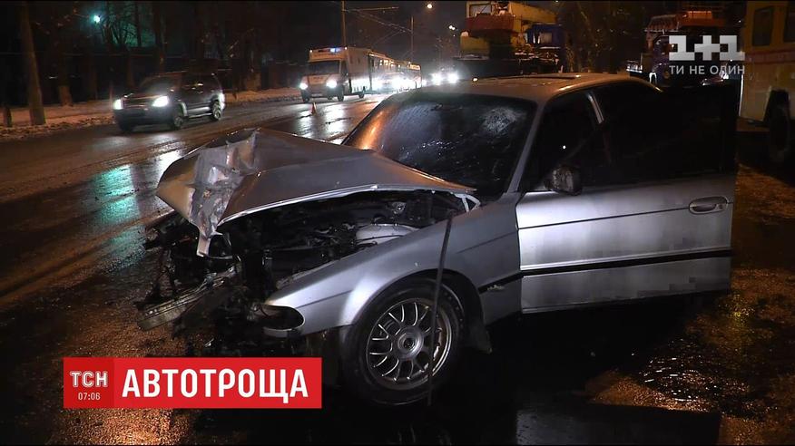 В Киеве водитель BMW врезался в столб, который сразу упал на дорогу