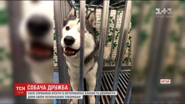 В Китае хаски с двумя товарищами хотел убежать с ветеринарной клиники