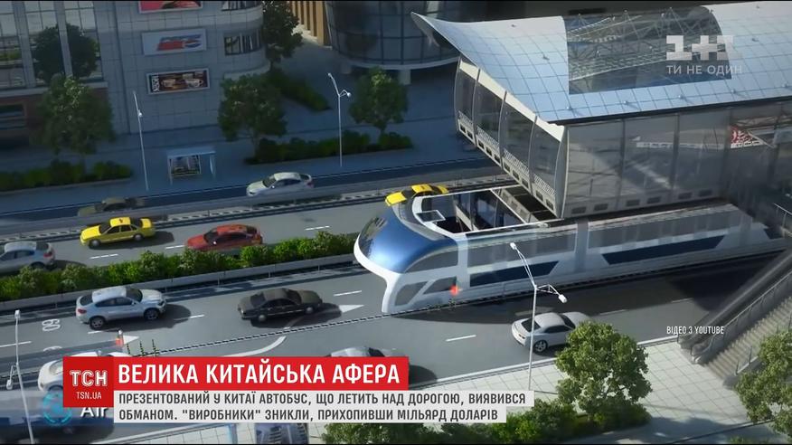 В Китае изготовители автобуса, что должен был ехать над дорогой, исчезли с миллиардом долларов после презентации