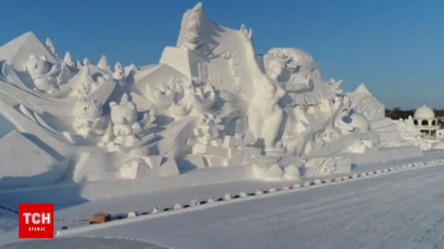 30-я Международная выставка художественной снежной скульптуры открылась для общественности в Харбине, провинции Хэйлунцзян. Основная скульптура выставки - лыжник с крыльями - посвящена Олимпийским играм в Пекине 2022 года. Она длиной 300 метров, максимальная высота ее достигает 35 метров. Скульптуру вылепили из 60 тысяч кубических метров искусственного снега 500 человек.