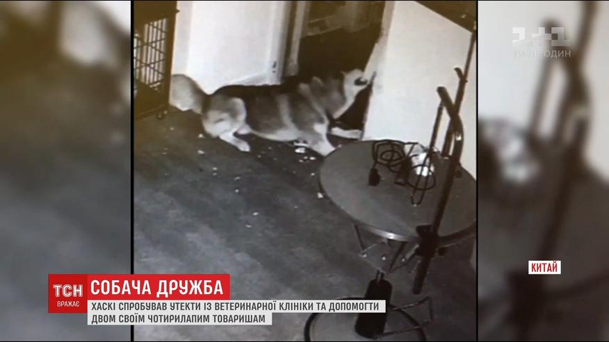 В Китае собака, убегая из клетки в ветеринарной клинике, освободила еще 2 псов