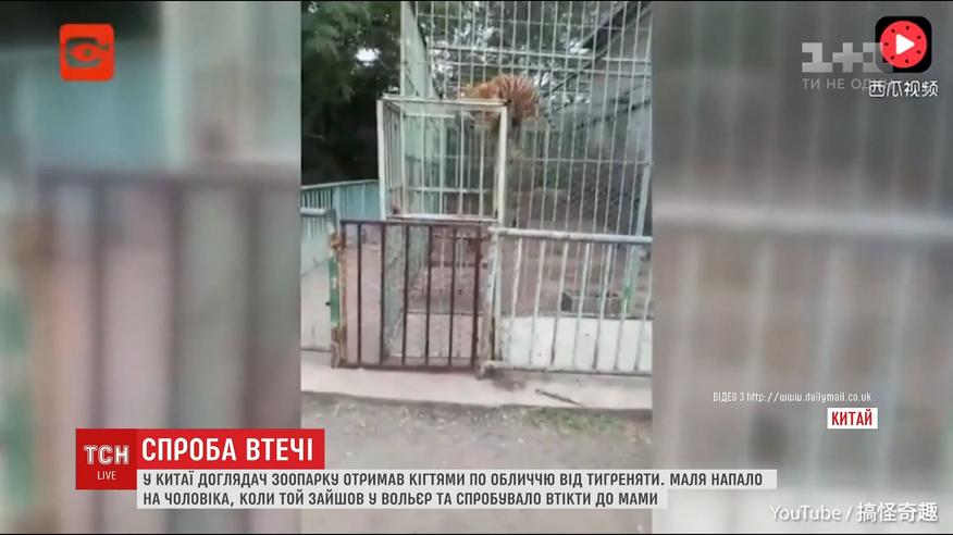 Работник получил по лицу хоть и не большой лапой, впрочем, острыми когтями, когда зашел в вольер с несколькомесячным тигренком. После этого полосатый взобрался на забор и попытался скрыться. Другие работники зоопарка его быстро догнали и, не церемонясь, за хвост затянули в помещение.