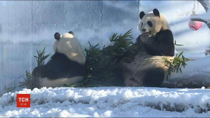 В китайском зверинце вольер панд засыпали искусственным снегом