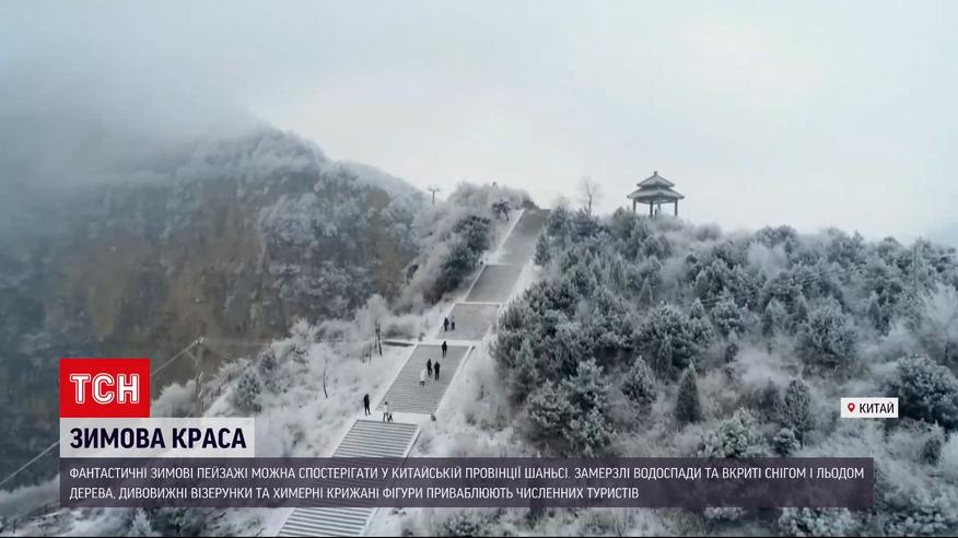 Фантастические зимние пейзажи можно наблюдать в китайской провинции Шаньси. Мороз и снегопады превратили горную местность в настоящую сказку. Замерзшие водопады и покрытые снегом и льдом деревья, удивительные узоры и причудливые ледяные фигуры привлекают многочисленных туристов. По прогнозам синоптиков, такая зимняя красота продлится еще как минимум месяц.