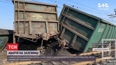 В Кривом Роге 14 вагонов товарного поезда сошли с рельсов во время движения