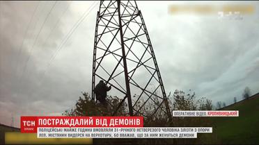 В Кропивницком пьяный мужчина залез на опору ЛЭП, потому что боялся демонов
