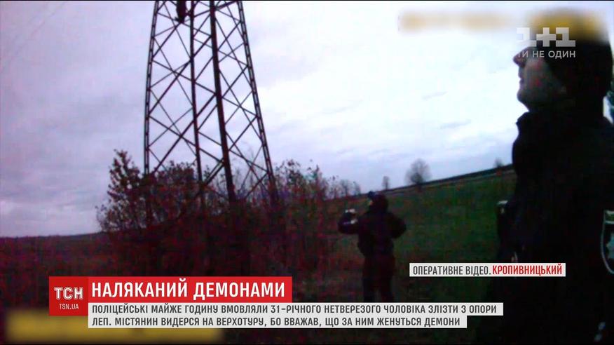 В Кропивницкому копы час уговаривали слезть с электроопоры мужчину, который убегал от демонов