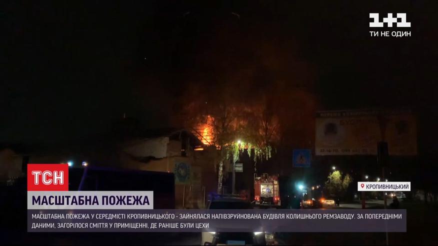 Крупный пожар в центре Кропивницкого - загорелось полуразрушенное здание бывшего ремзавода. По предварительным данным, загорелся мусор в помещении, где раньше были цеха. Огонь быстро распространился и охватил почти пол тысячи квадратных метров площади. Через несколько часов возгорание локализовали.