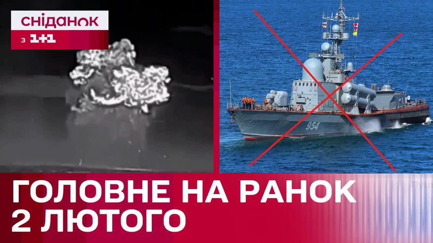 В Крыму потопили российский ракетный катер "Ивановец". Эту спецоперацию Главное управление разведки Минобороны Украины провело в ночь на 1 февраля. Судно было на рейде на озере Донузлав. Надводные дроны-камикадзе несколько раз попали в корпус. Одно из попаданий было в районе пусковых установок ракет, после чего они сдетонировали. Судно затонуло. На борту могли быть четыре десятка человек. О свежих новостях на утро 2 февраля узнавайте в рубрике "Главное на утро" от Сниданка с 1+1.