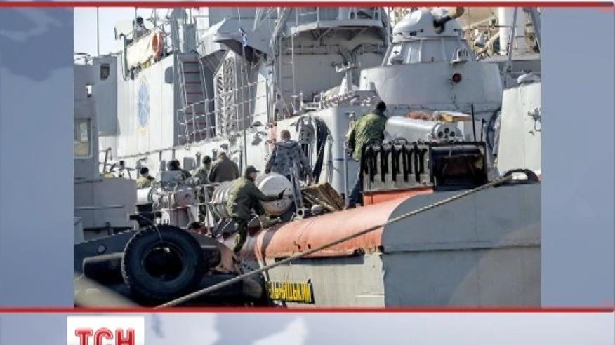 Российские войска накануне захватили 3 судна в Севастопольской бухте - корветы "Луцк", "Хмельницкий" и "Тернополь". Российский триколор сами подняли минимум три судна.