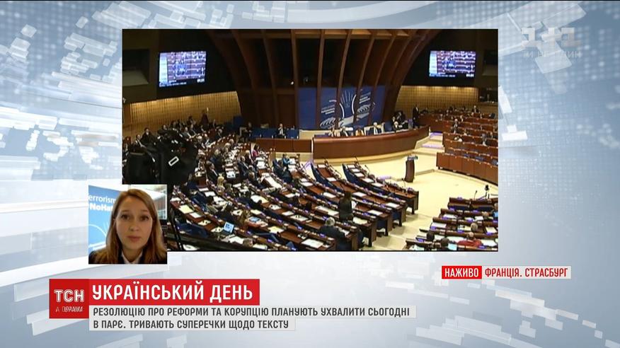 Сегодня в Страсбурге запланирована дискуссия парламентариев о состоянии демократических институтов в Украине, в частности, будут говорить о ходе реформ и коррупции. Вечером планируется принятие резолюции и сегодня уже с самого утра в кулуарах ПАСЕ продолжаются политические баталии между друзьями Украины и сторонниками России по тексту резолюции.