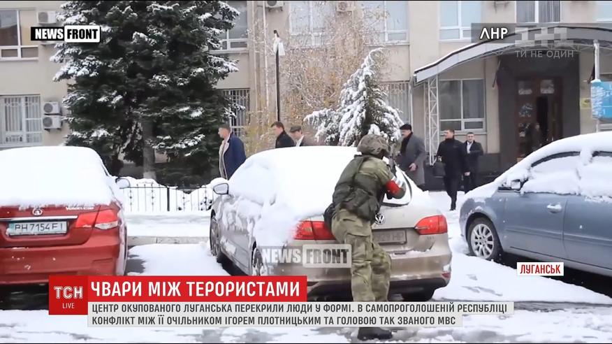 Главарь самопровозглашенной "ЛНР" Плотницкий и ее так называемый министр внутренних дел Корнет выясняют отношения. Утром вооруженные люди взяли штурмом псевдо-генпрокуратуру и захватили ее руководителя, близкого к Плотницкому. Судьба самого главаря террористов неизвестна, сам он уверяет, что до сих пор руководит Луганском.