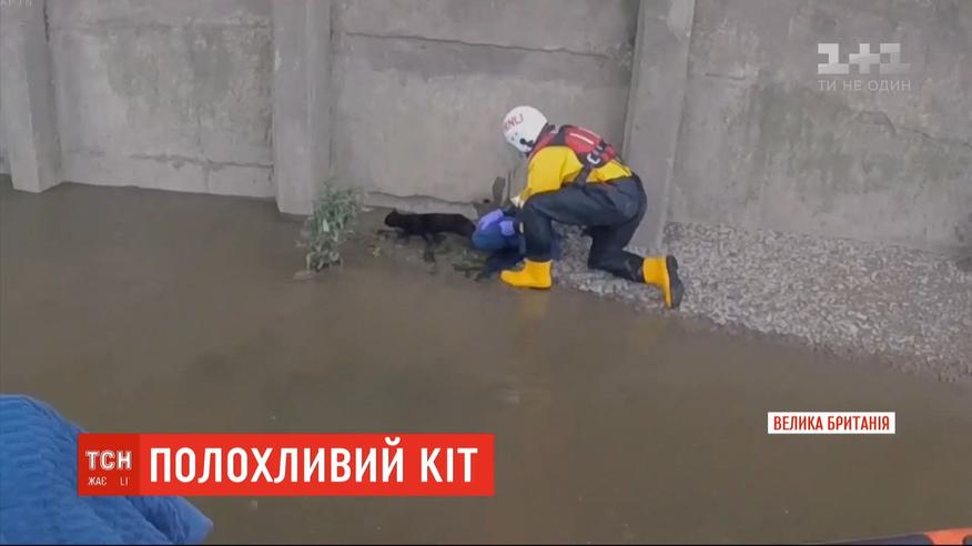 В Лондоне спасателям едва удалось вытащить из Темзы пугливого кота
