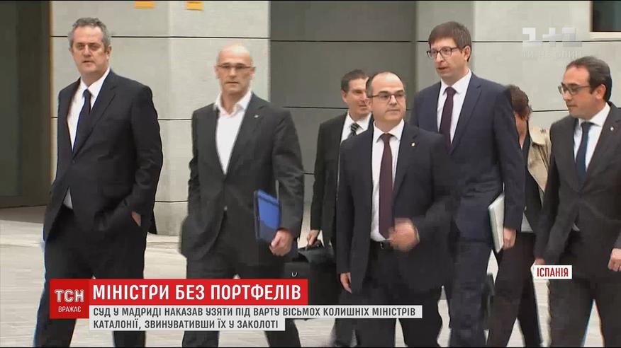 Отстраненные от власти испанским правительством через референдум о независимости провинции, бывшие региональные чиновники прибыли в столицу свидетельствовать. Их обвинили в мятеже и растрате, приказали держать под стражей. Бывший президент Каталонии в Мадрид не приехал.