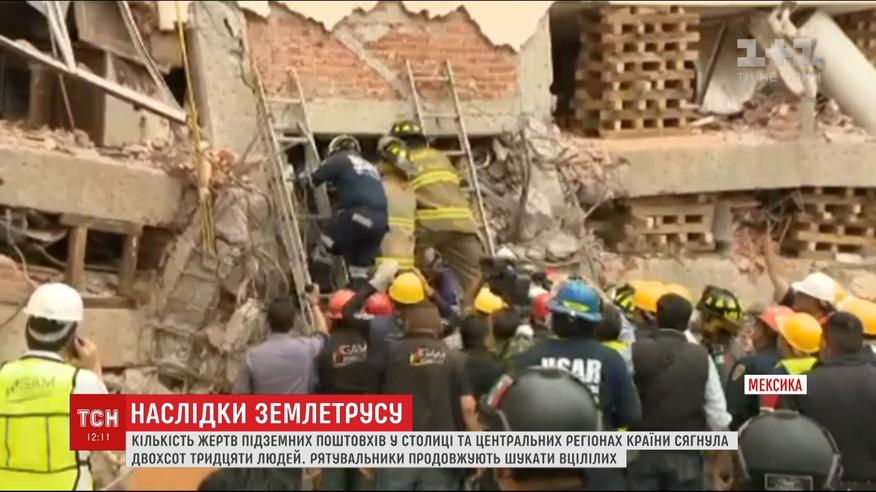 Число жертв разрушительного землетрясения в Мексике достигло 230 человек. Спасатели продолжают разбирать завалы, пока не исчезли шансы найти под обломками уцелевших. Внимание всей страны приковано к разрушенной школы в Мехико, где погибли более 20 детей. Из-под обрушенных стен пытаются извлечь девушку, чудом выжила во время землетрясения.
